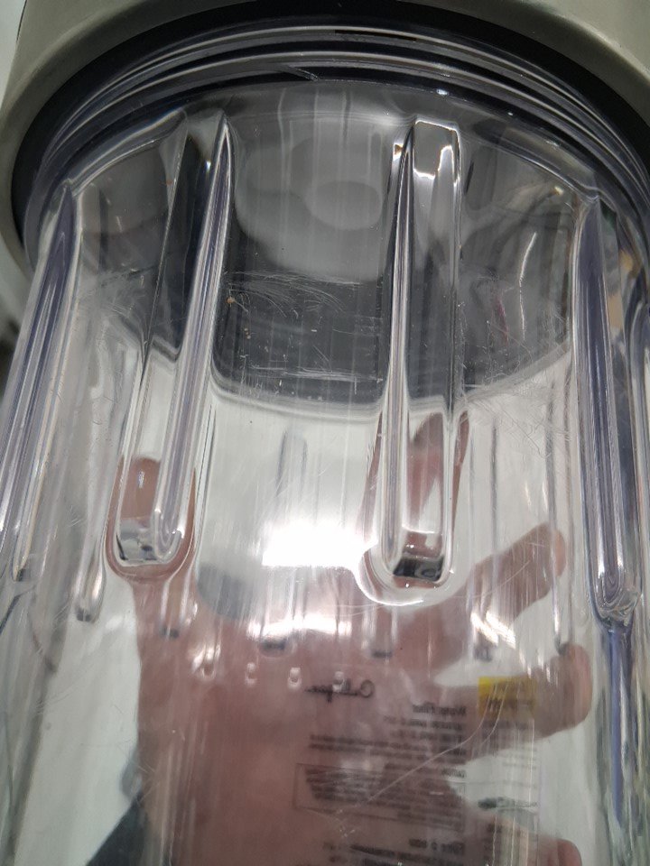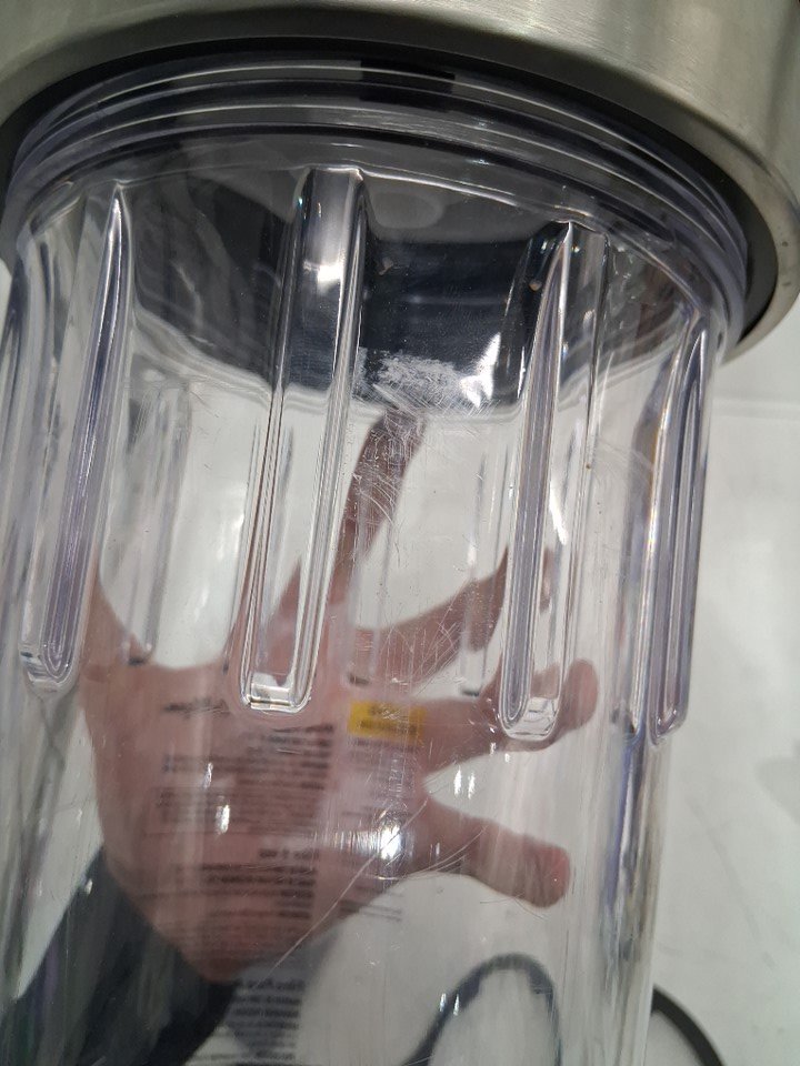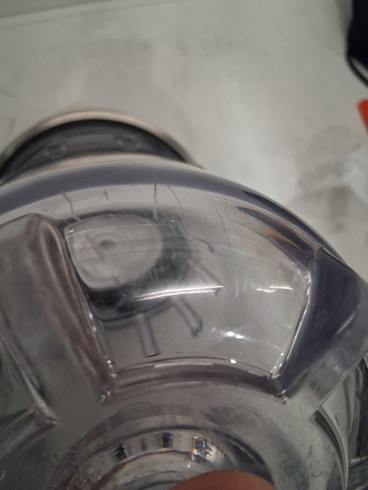Has a decent amount of scratch marks on the clear plastic part and there was some moisture near the lid.