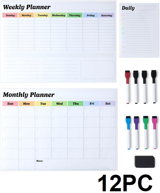 12PC Amazon Basics Magnetic Dry Erase Calendar Whiteboard, MARKERS AND ERASER