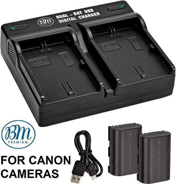 BM Premium 2-Pack of LP-E6N Batteries and Dual Battery Charger for Canon EOS R, EOS 60D, EOS 70D, EOS 80D, EOS 5D III, EOS 5D IV, EOS 5Ds, EOS 6D, EOS 6D Mark II, EOS 7D, EOS 7D Mark II, XC15 DSLR - (Model: BM-2b8, BMLP-e6N)