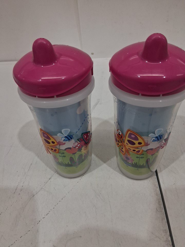 2pk Playtex Sipsters Stage 3 Spill-Proof Leak-Proof insulated Spout Sippy Cups - 9oz - pink BUTTERFLIES