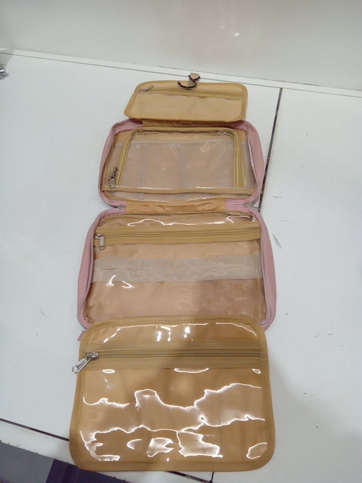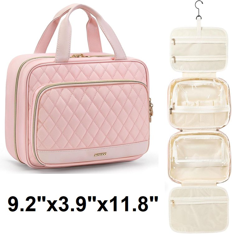 MDODO TRAVEL TOILETRY MAKE UP BAG WITH HANGING HOOK AND MULTI POCKETS - 9.2"X3.9"X11.8"- PINK