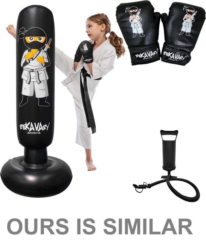Punching Bag for Kids Inflatable Punching Bag COMBO Kit with Kids Boxing Gloves and Pump - Black