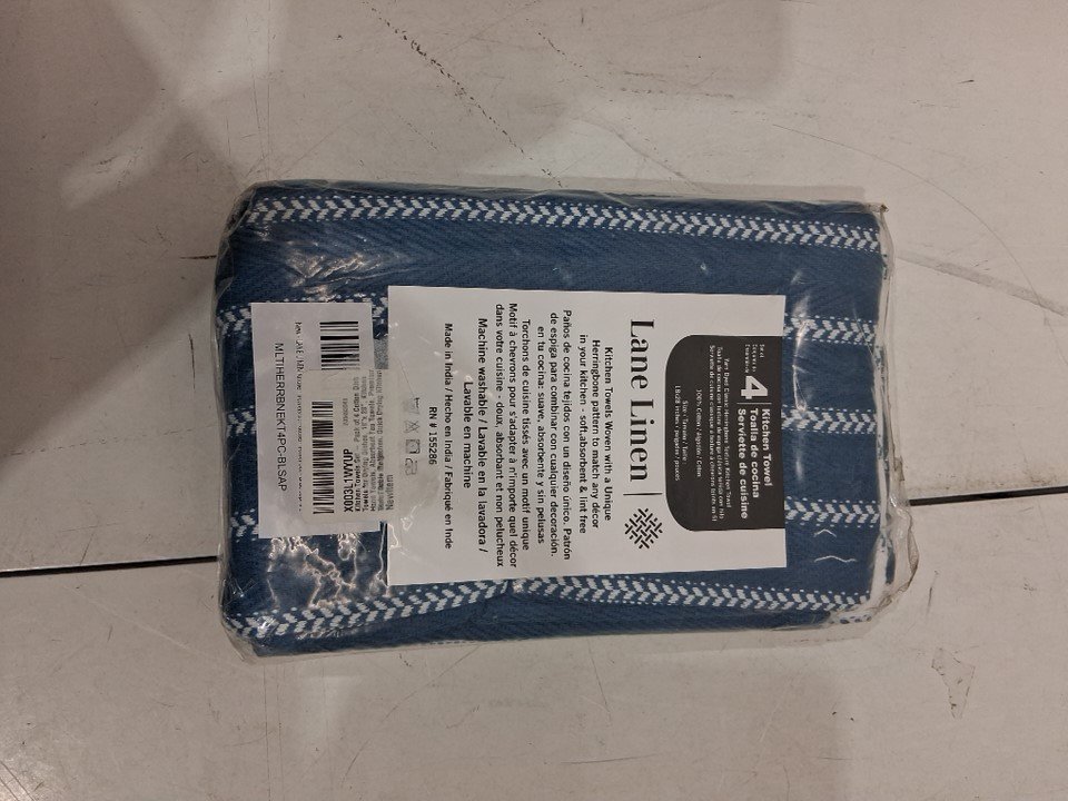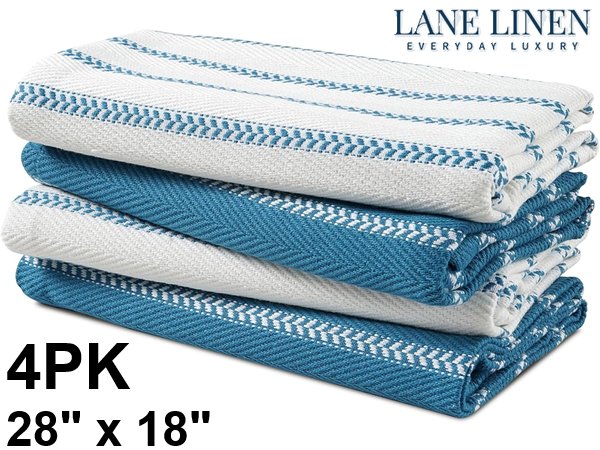 4PK LANE LINEN Quick Drying Kitchen Towel Set - 28" X 18" - Blue Saphire/WHITE