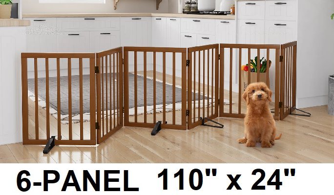 Freestanding Pet Foldable GATE with Support Feet - 110" X 24" - Walnut (MODEL: 6pgl-xy-062-HHT)