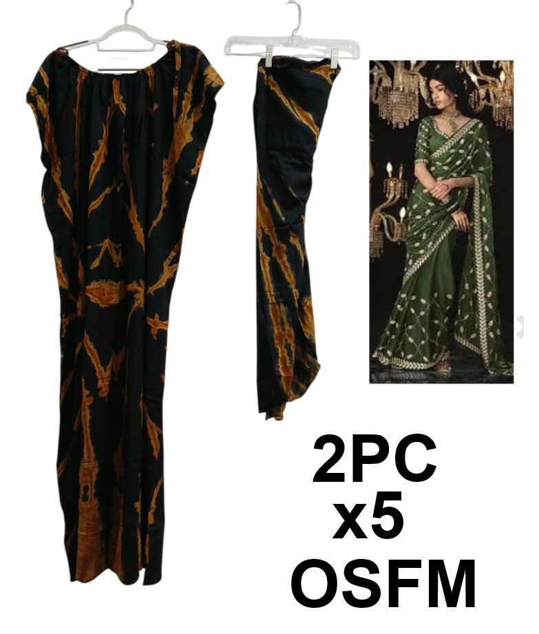 5 (2pc) TRADITIONAL kaftan dresses with matching fabric wrap - osfm - multi
