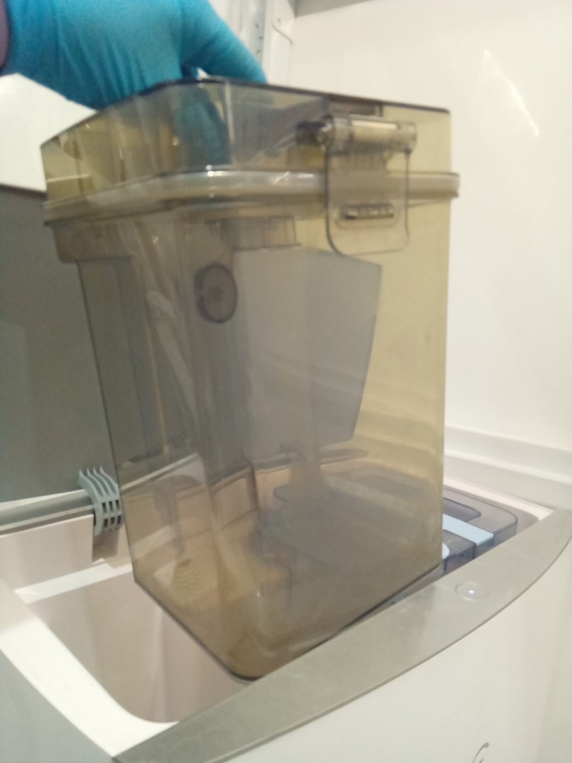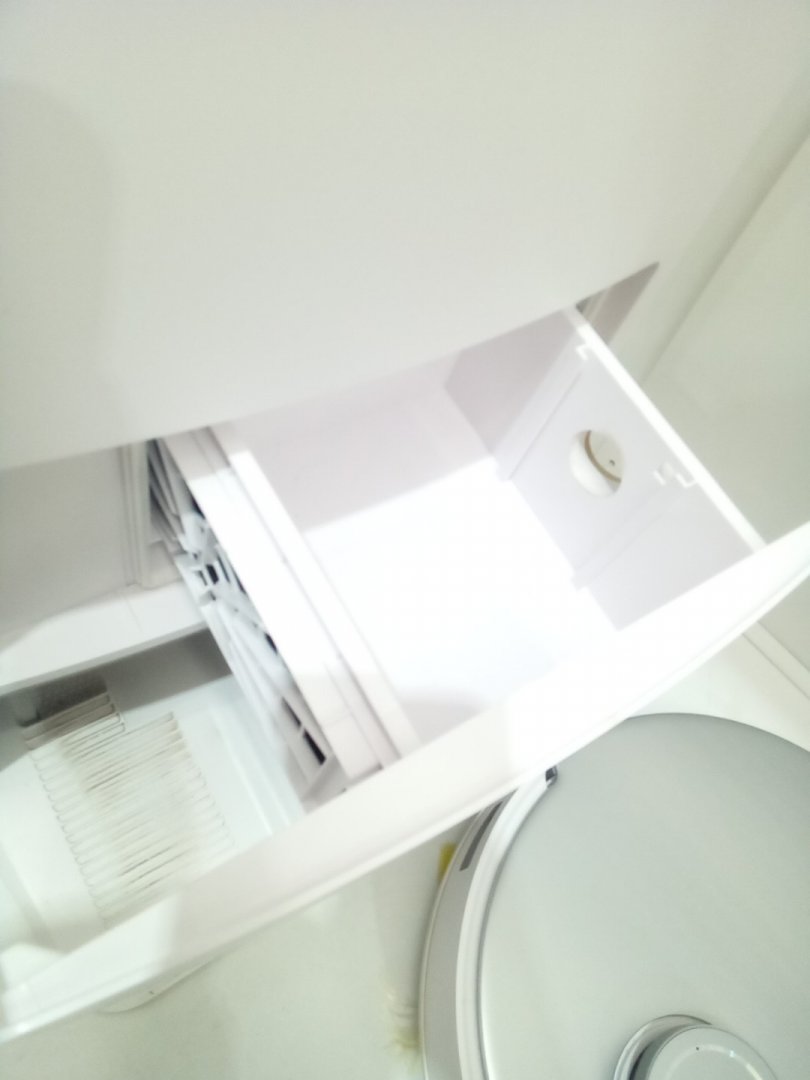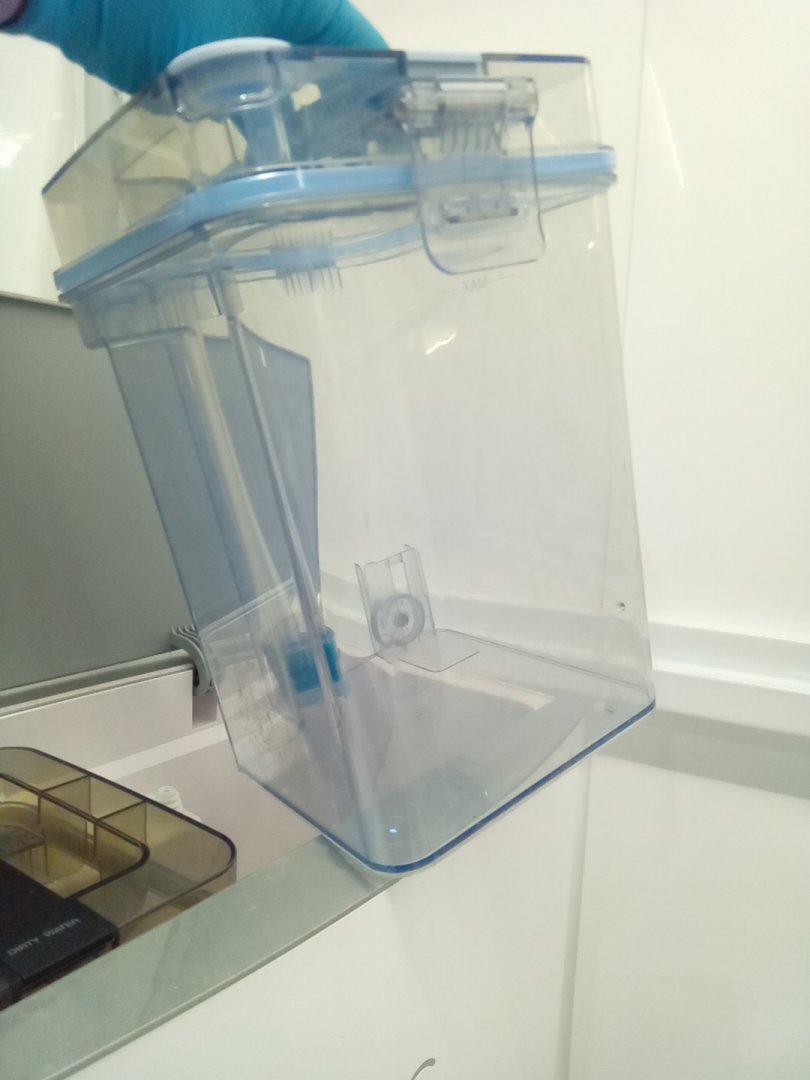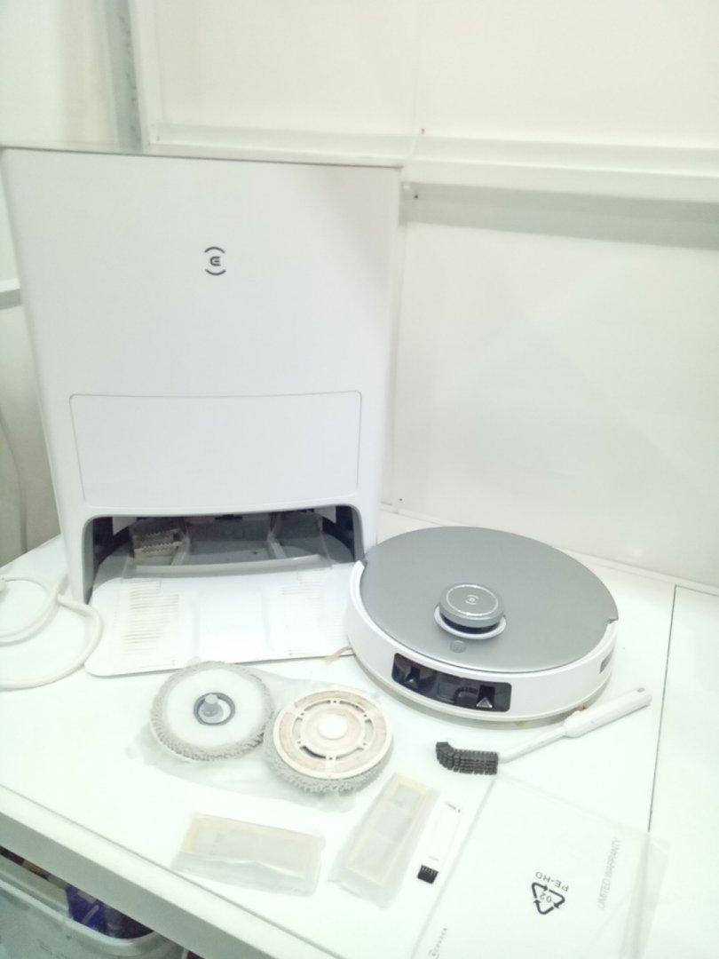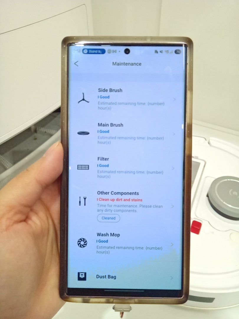 Item shows signs of prior frequent use with the dirt stains on the mop pads, yellowing of the brushes, and residual dirt on the base. A new vacuum bag is required for the base. Upon testing, the left wheel (when turned upside down) gets stuck and did not spin at times, and thorough maintenance is required. Please see photos.