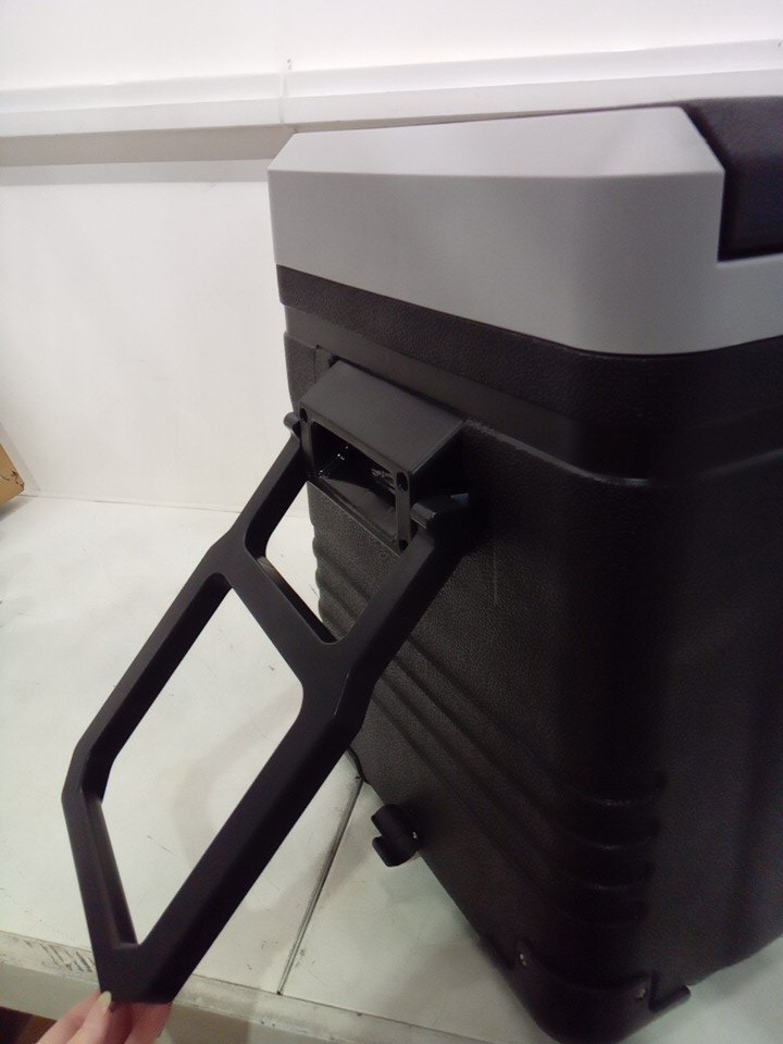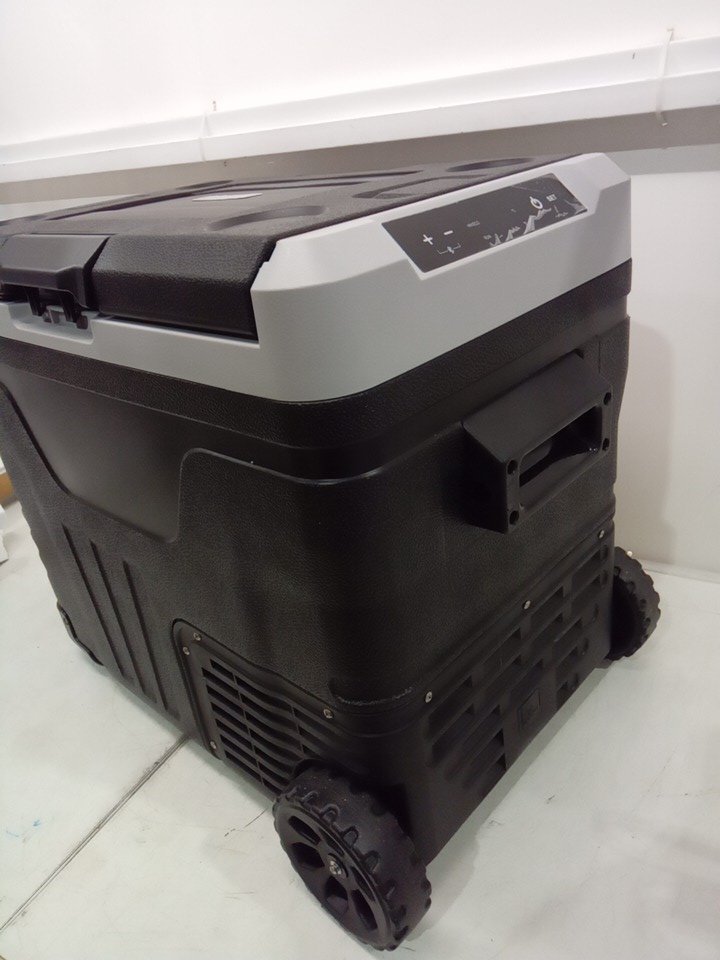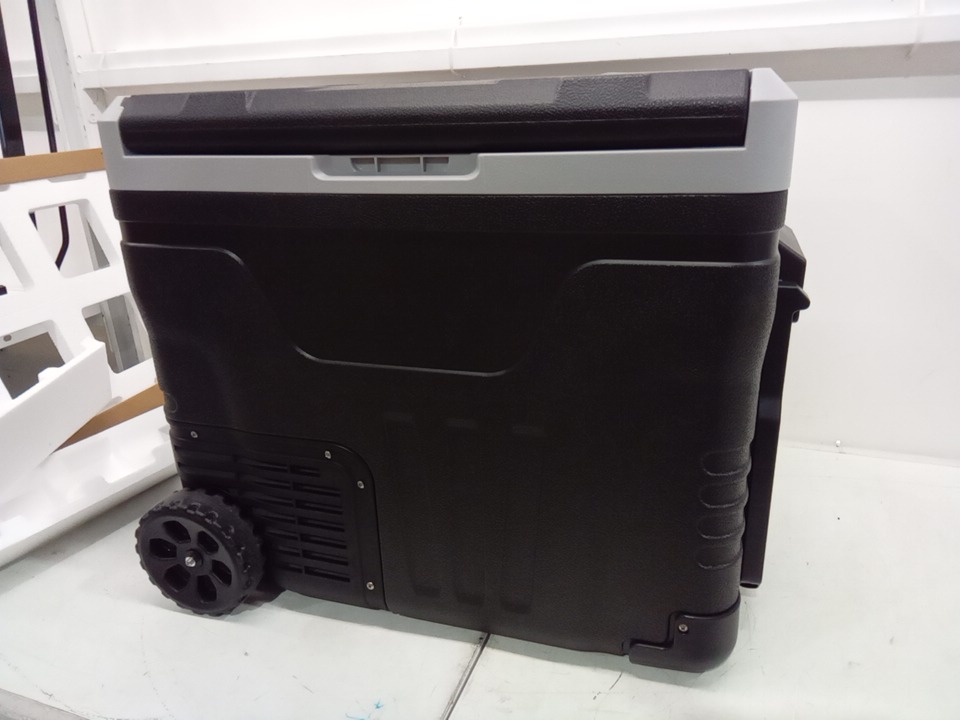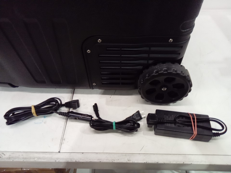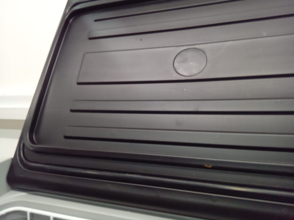 there is very minor staining on the inside of the lid and on the wheels indicating use. see photos please.