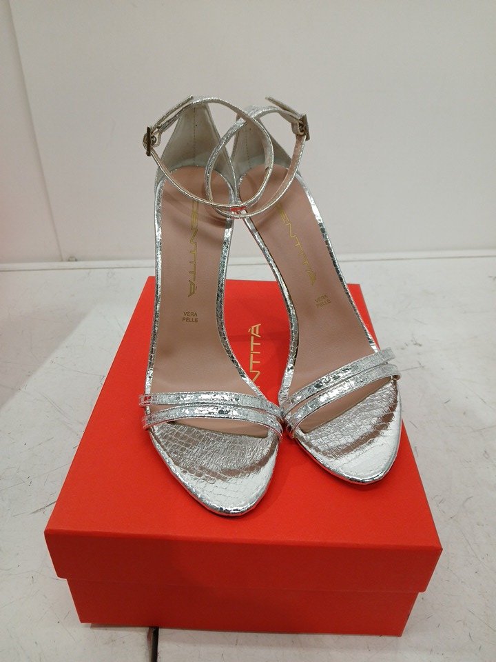 WOMEN'S IDENTITA METALLIC STILLETO HEELS - SIZE 6.5 (37) - SILVER