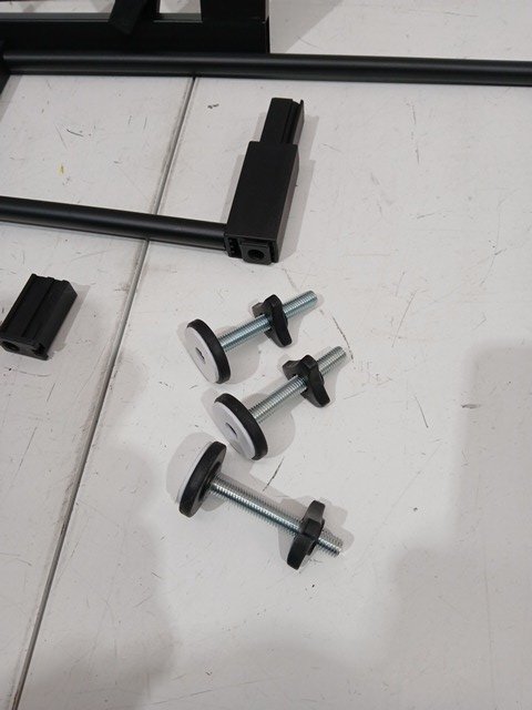 There are some scuff marks on the product, loose hardware, and the manual is missing.