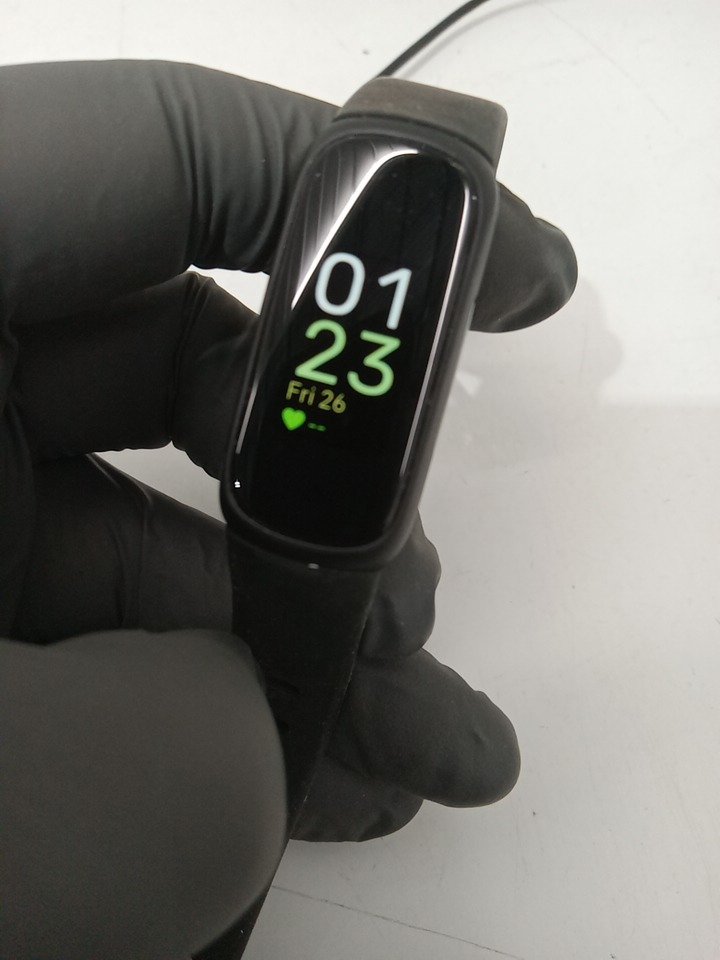 There are minor scratch marks on the base and dust residue on the watch strap from previous use. Tested for power and functionality. (Please see photos)