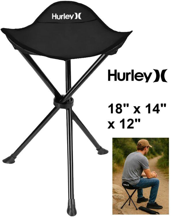 Hurly portable folding/collapsible tri-leg backless stool - 18"x14"x12" - black - (model: 169501B1)