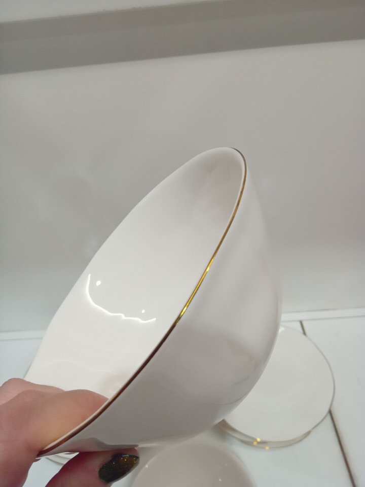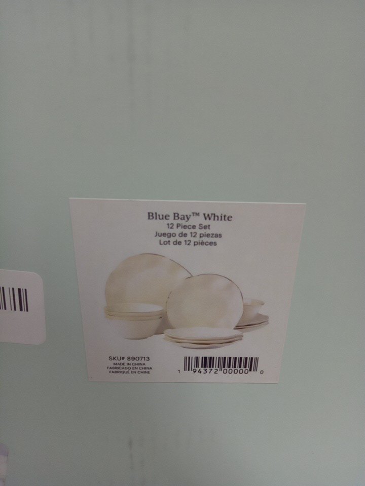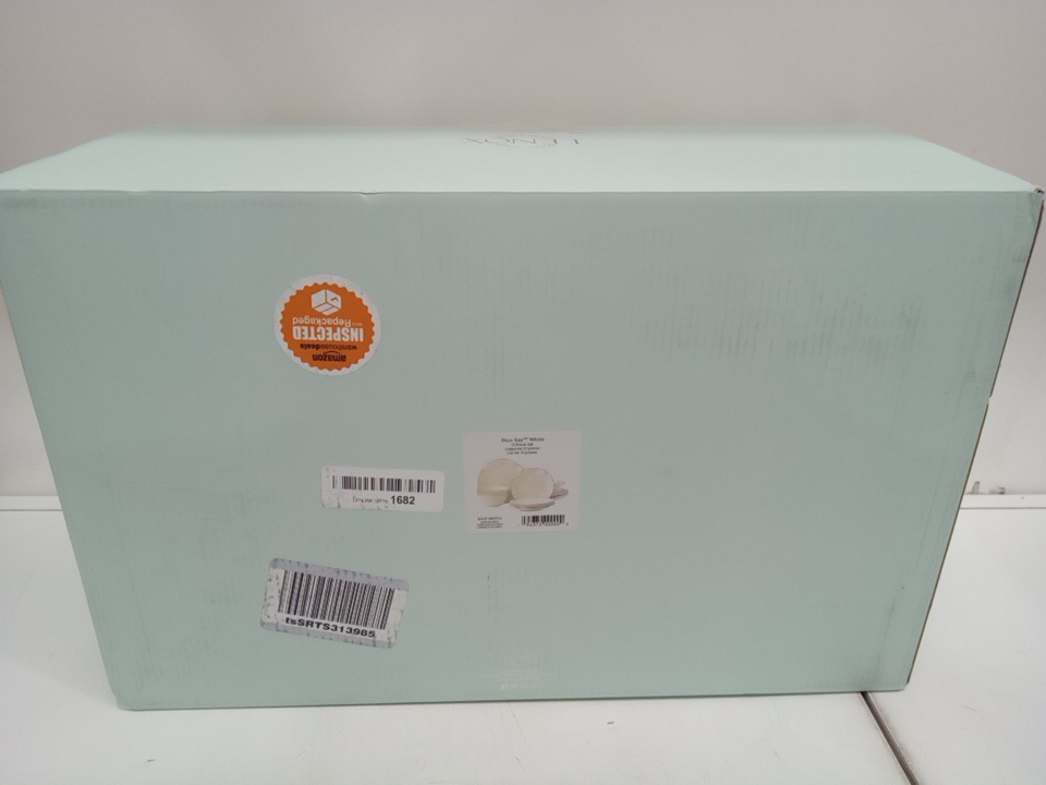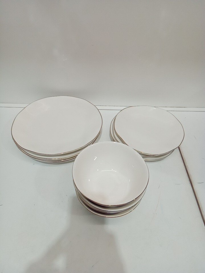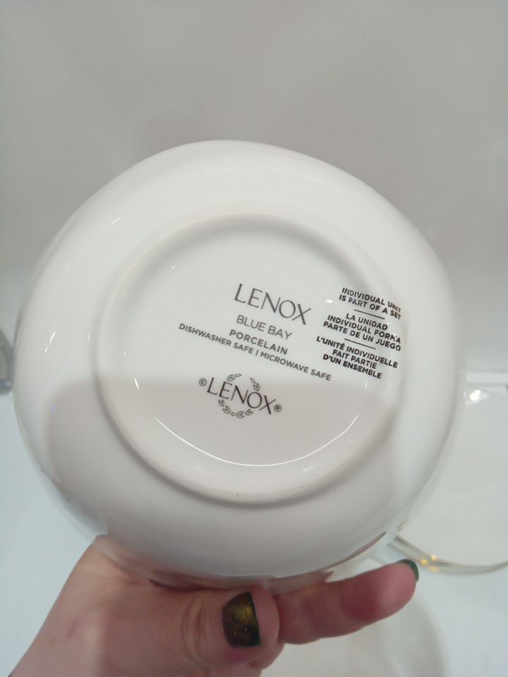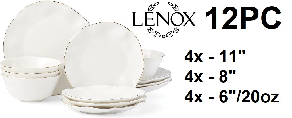 12PC Lenox Blue Bay Porcelain Dinnerware Set - plates (11"/8") bowl (6"/20oz cap) - white with gold rim (MODEL: 890713)