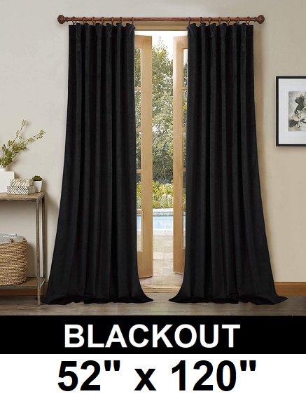 (2 PANEL) stangh blackout insulated velvet curtains - 52" x 120" - black
