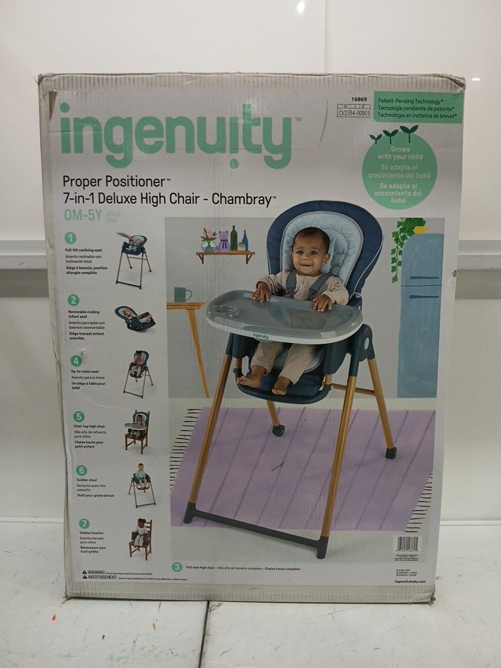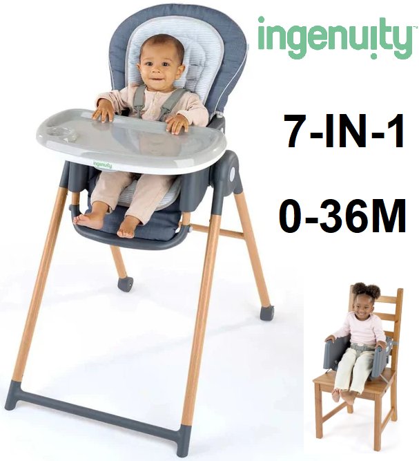 ingenuity 7-in-1 Proper Positioner High Chair - 0-36 months - chambray (model: 16869)