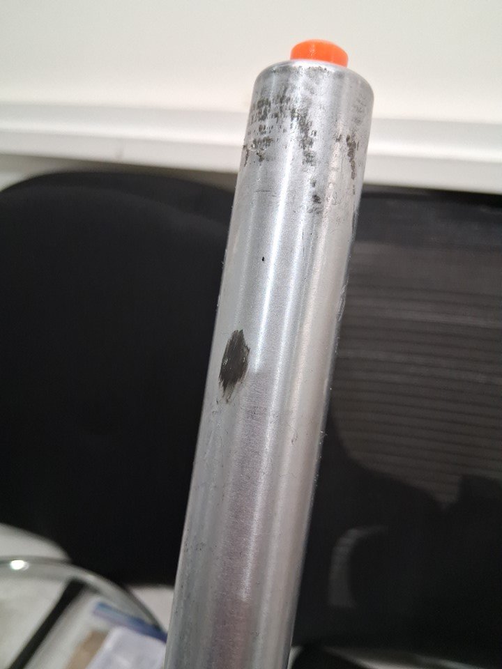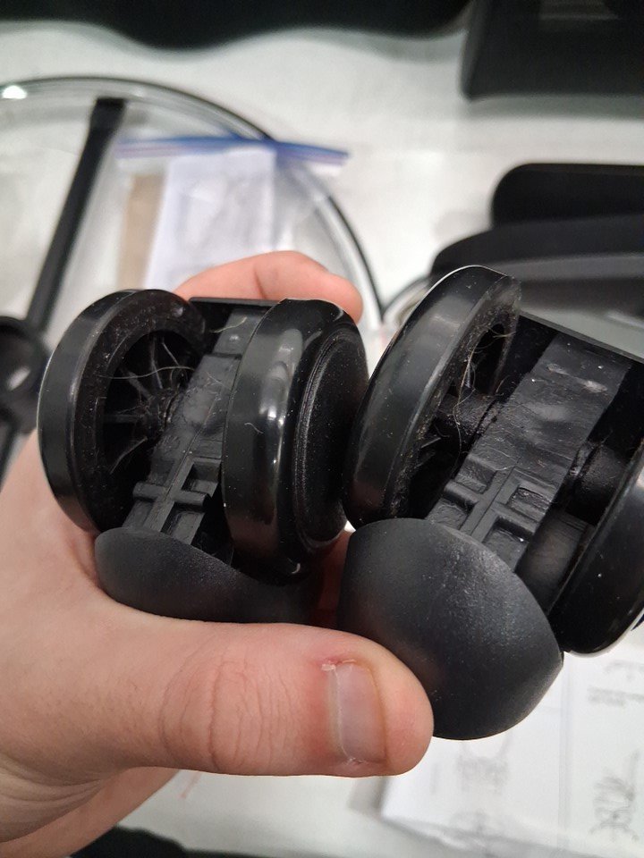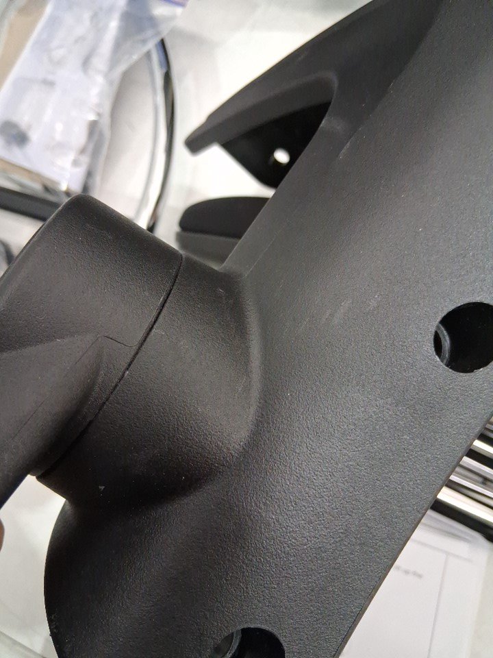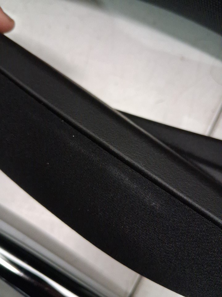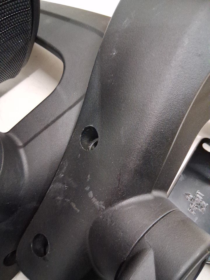 The armrest both have some scuff marks on them, and the wheels show signs of previous use.
