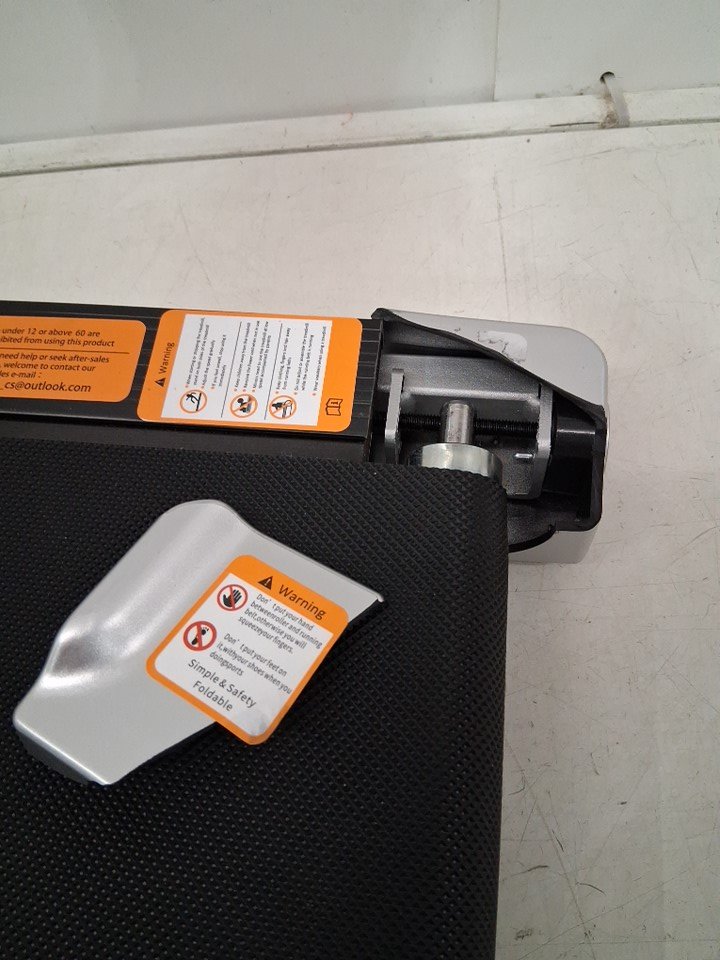 There as a damaged corner on treadmill. The bottle of oil that came with treadmill leaked on the running pad, but should easily clean off (see photos) Tested for power