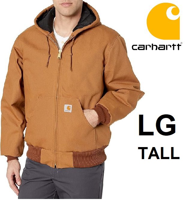 MEN'S CARHARTt QUILTED FLANNEL LINED DUCK ACTIVE loose fit hooded JACKET - large - BROWN (MODEL: 0J0140-M)