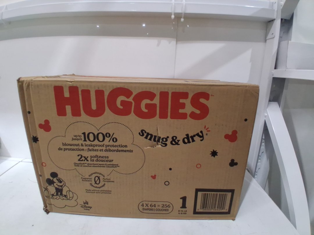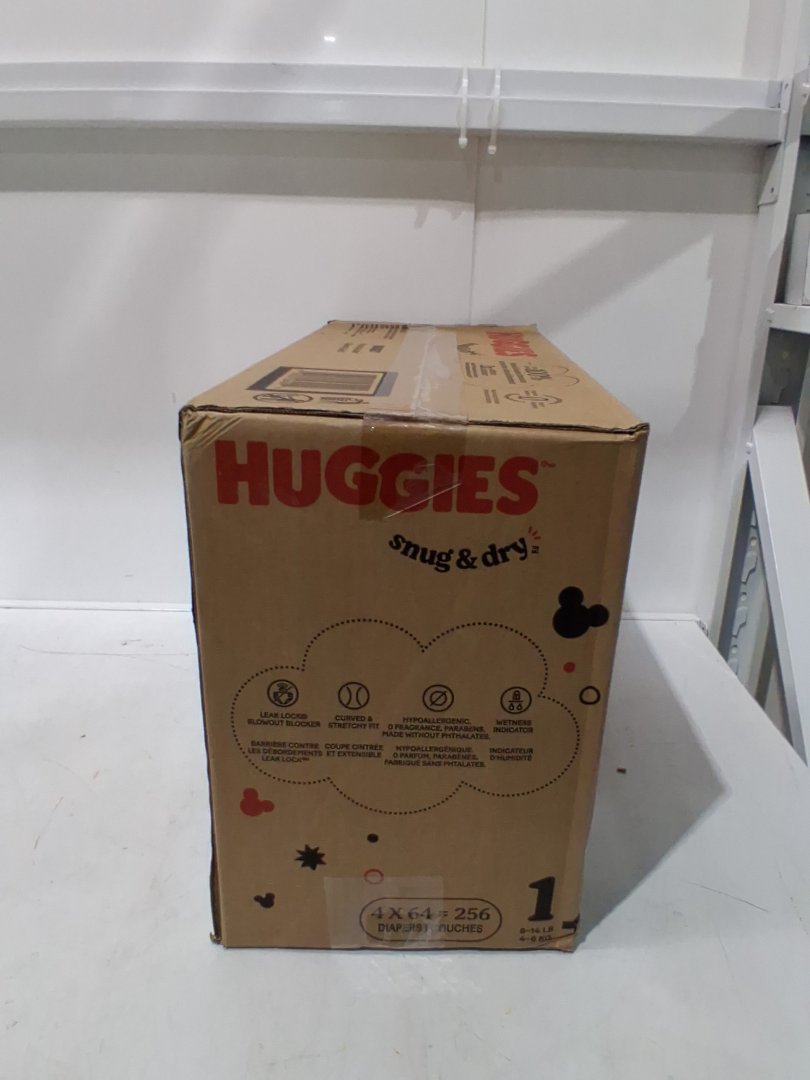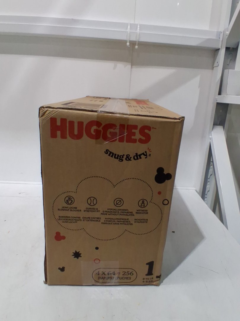 256PK HUGGIES SNUG AND DRY DIAPERS WITH TRIPLE LAYER PROTECTION - SIZE 1