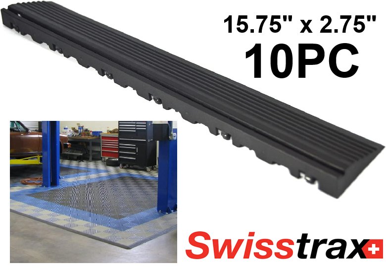 10PC Swisstrax Ribtrax Pegged PRO Edges for Interlocking Garage Floor Tiles, 15.75" x 2.75" - Black