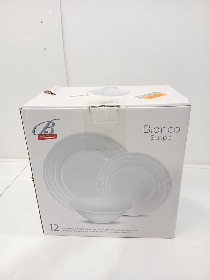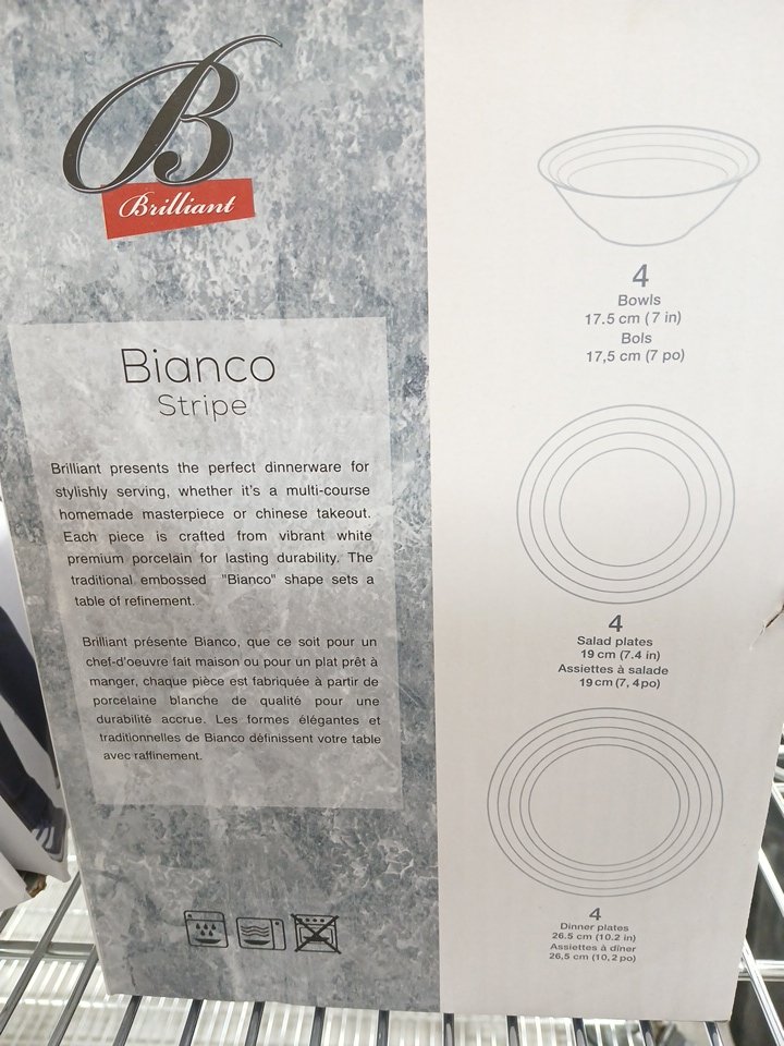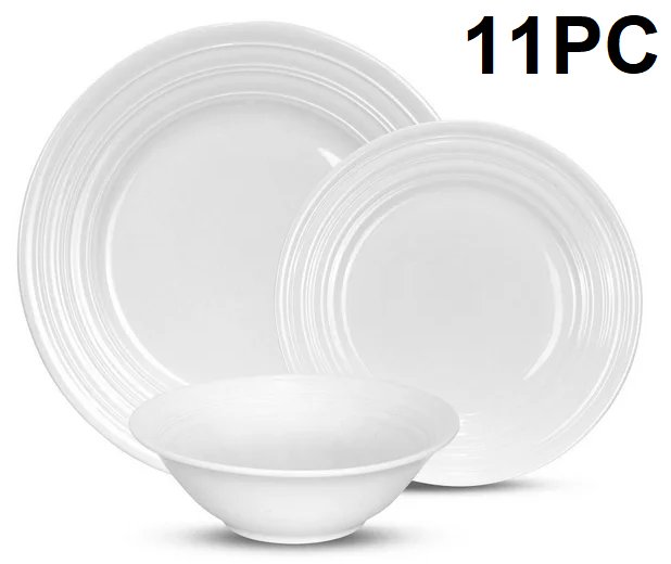This item comes with 4 dinner plate, 4 small plates, and 3 bowls. One of the bowls broke.