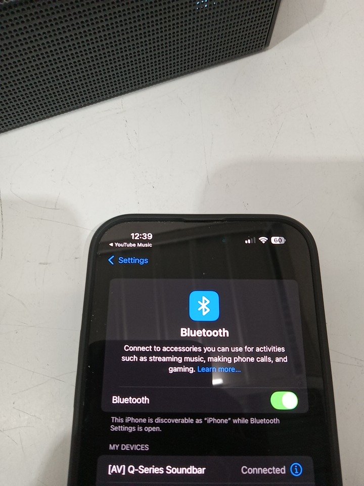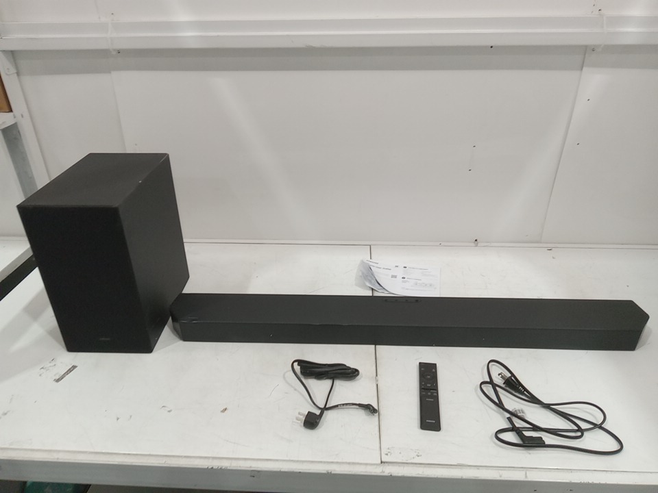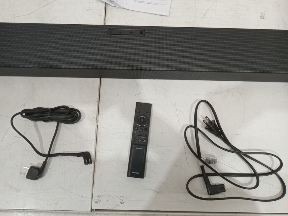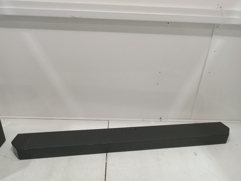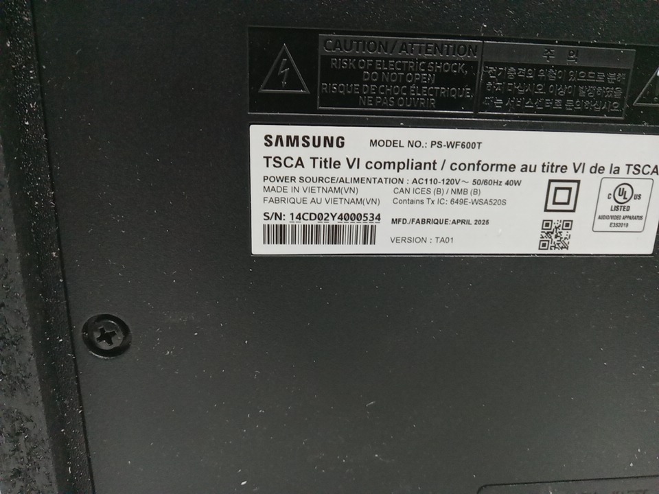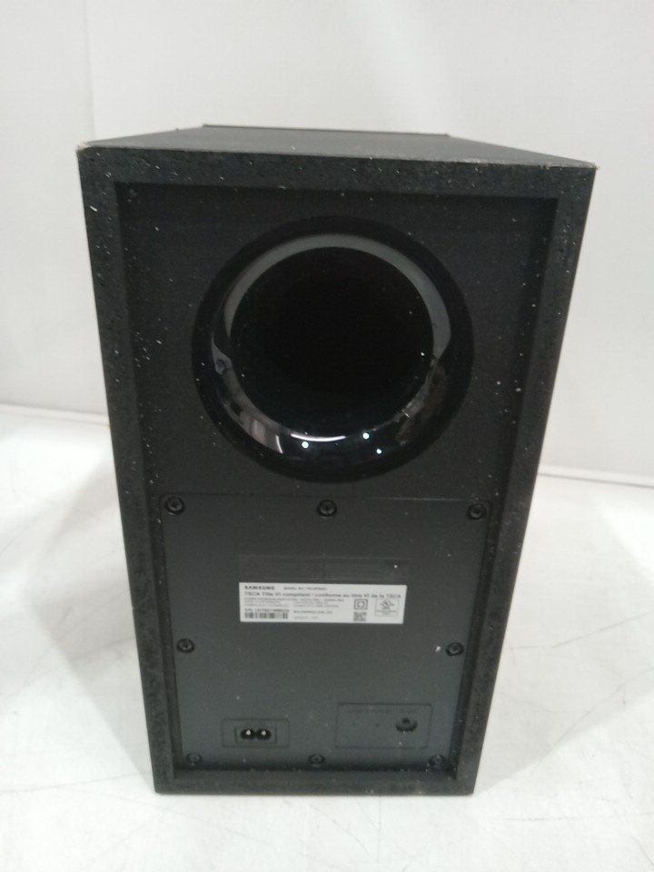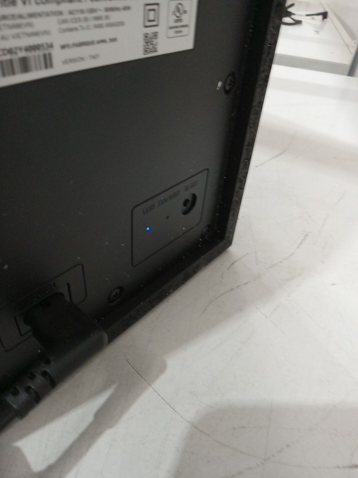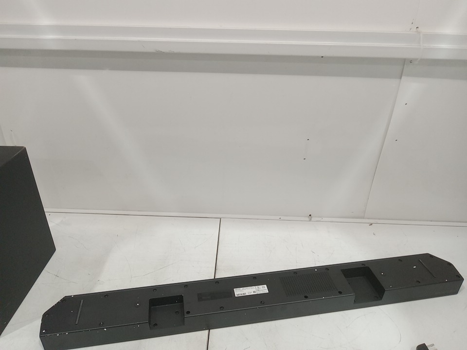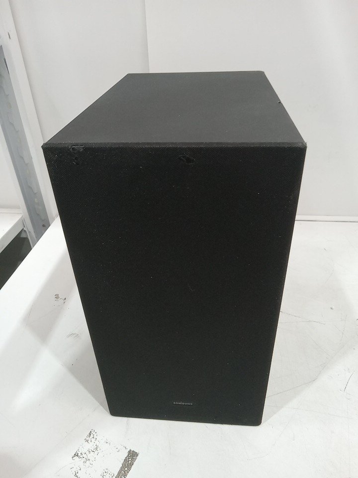 There are dents on the soundbar near the logo and on the top, as well as scratch marks on the base. The mesh on the top has cuts, and there are additional dents on the top left corner, the top right middle area, and a dent/chip on the top back right corner. However, there is no issue with the sound quality. Tested for power and functionality. (Please see photos)