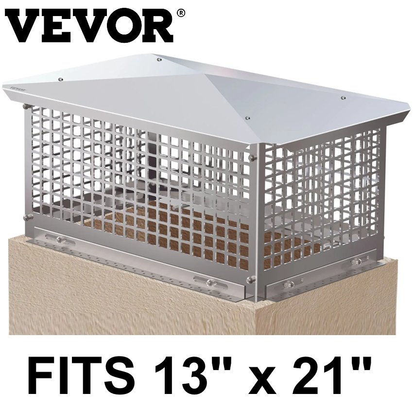 VEVOR Chimney Cap flue 304 Stainless Steel Fireplace Chimney Cover, Adjustable Metal Spark Arrestor Mesh - FITS 13" x 21" (model: YCZ13X21LIFYLTYB6V0)