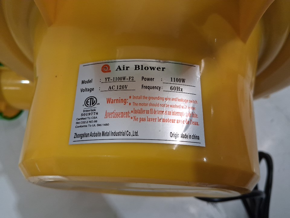 ZAFIED Bounce House Commercial Air Blower Inflator - 1100W/1.47HP - Yellow/Green (Model: YT-1100W-F3)