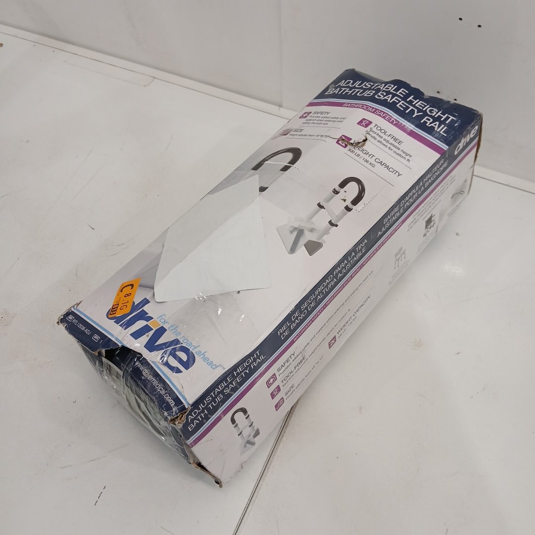 DRIVE MEDICAL ADJUSTABLE HEIGHT & WIDTH BATHTUB SAFETY RAIL - 14.5"-17" x 3"-7" - 300lbs Max - WHITE (MODEL: RTL12036-ADJ)