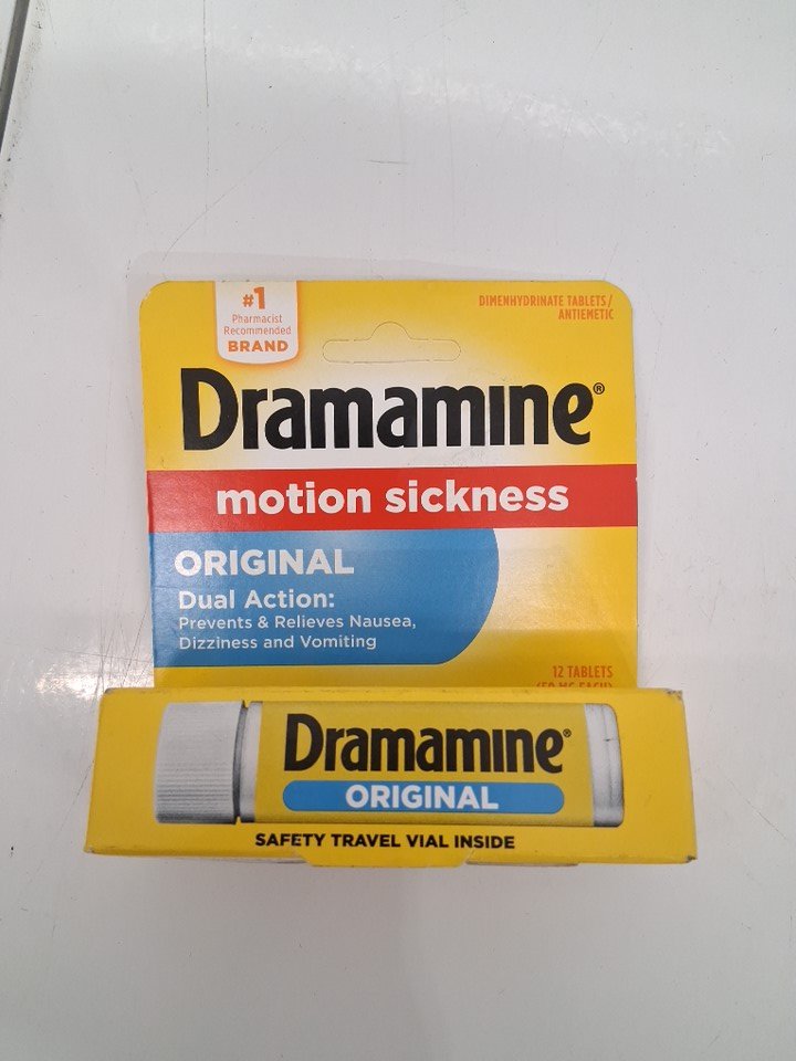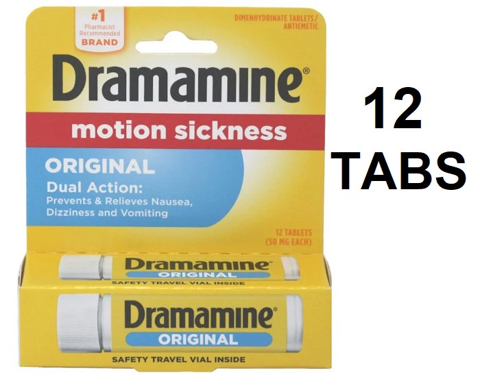 (12 TABLETS) Dramamine Motion Sickness Relief - prevents and relieves nausea, dizziness and vomiting
