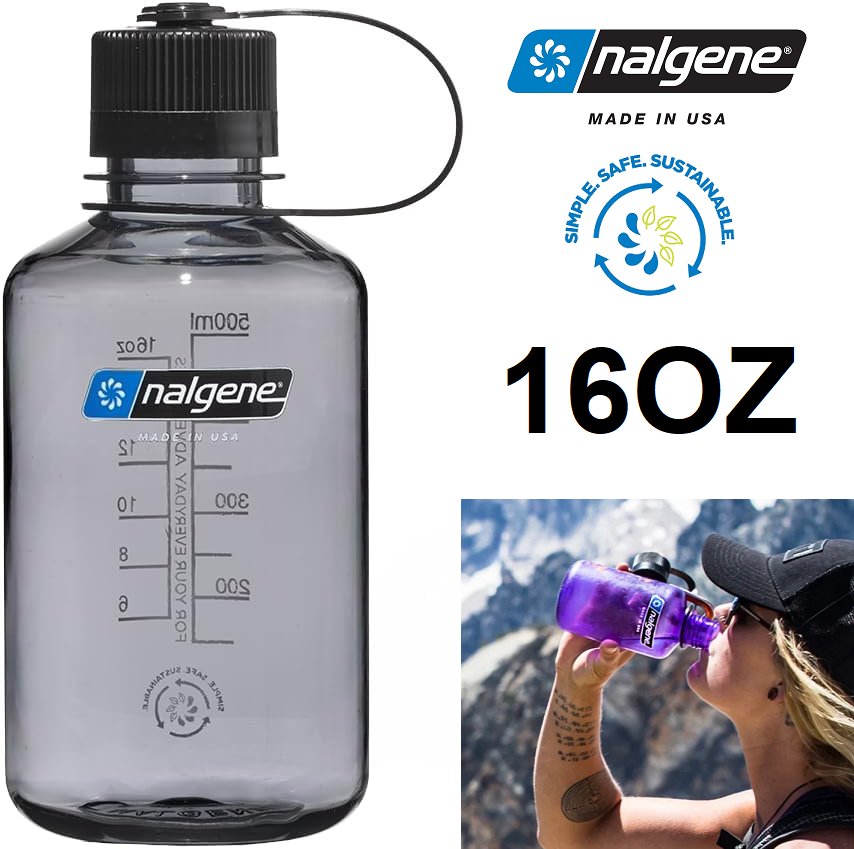 NALGENE sustain TRITAN bpa-free narrow-MOUTH WATER BOTTLE - 50% recycled plastic - 500ML/16OZ - GREY/BLACK (model: ‎2021-1132T)
