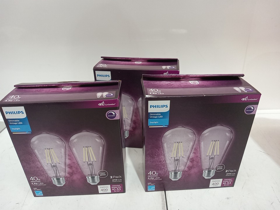 3 (2pk) Philips LED ST19 Daylight Glass Dimmable - 40W - Clear