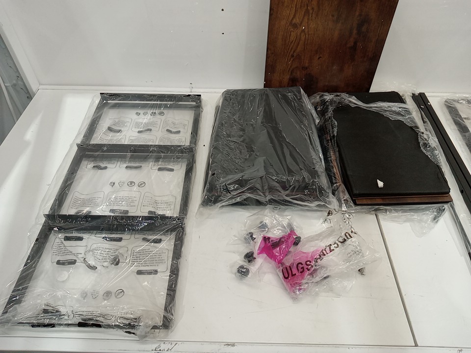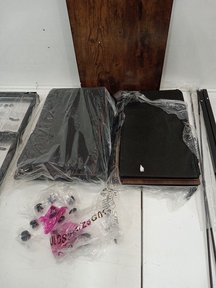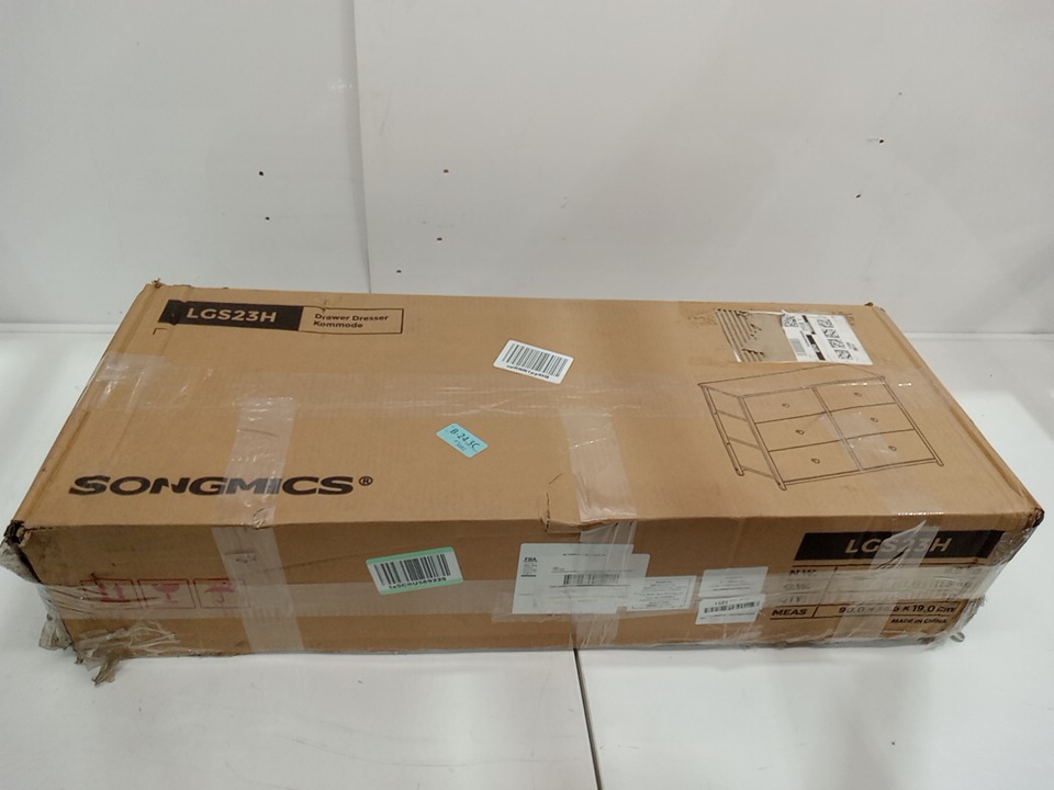 SONGMICS FABRIC DRESSER WITH METAL FRAME AND WOODEN TOP - BLACK/BROWN (MODEL: LGS23H)