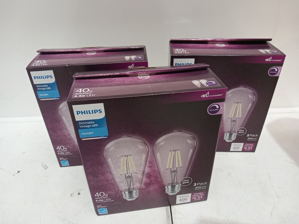 3 (2pk) Philips LED ST19 Daylight Glass Dimmable - 40W - Clear