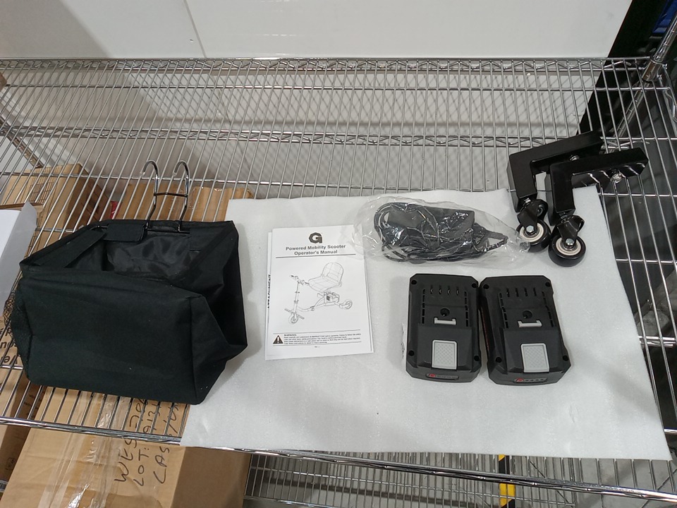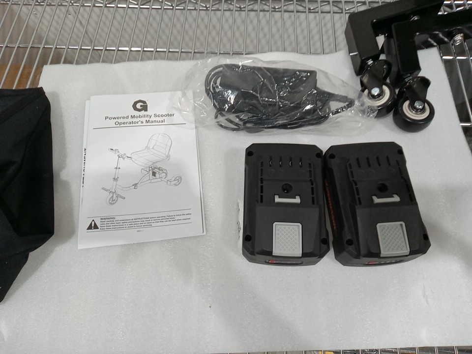 gcm 3 wheel folding electric moxbility scooter with two 48V batteries - 4mph 6.5 mile range 275lbs max load - Black/Blue (model: gcat016)