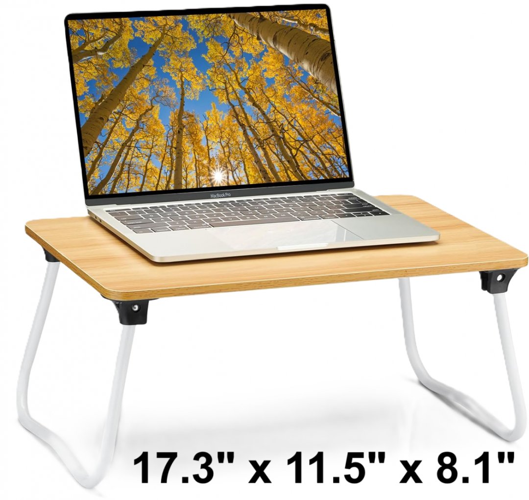 Ruxury Foldable Laptop Stand Bed Desk - 17.3"x11.5"x8.1" - white/wood