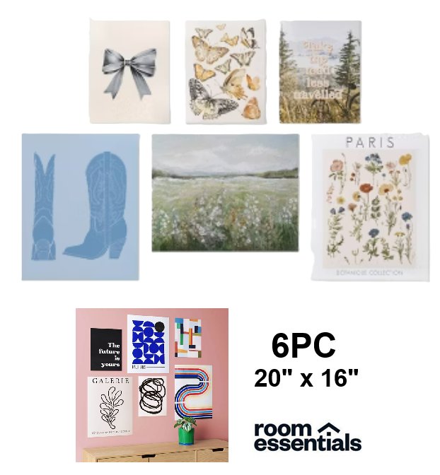 6pc Room Essentials Modern Movement Wall Art Set Poster Prints - 20" x 16" - multi