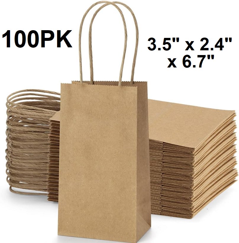 100pk BagDream Mini Gift Bags - 3.5" x 2.4" x 6.7" - brown