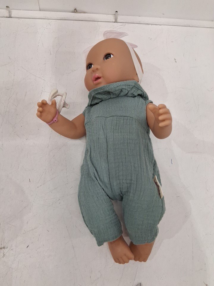 lullababy Realistic Baby Doll with Removable Outfit, HEADBAND and pacifier accessory - 14" - green (model: LBY7281Z)