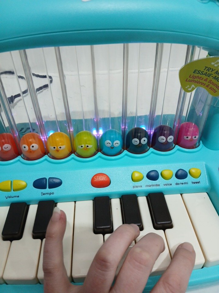 B. toys Hippo Pop Musical Keyboard Interactive Piano Toy with Lights, Sounds & Bouncing Balls – Ages 1+ - blue