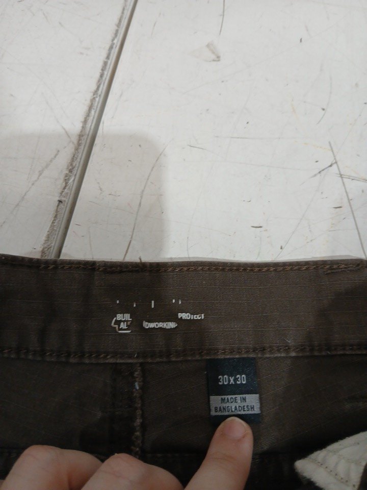 the details on the inside of the waistband are worn off there is a mark on the thigh of the pants
