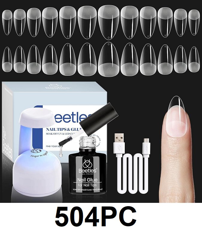 504PC BEETLES NAIL TIPS & GLUE SET SOAK OFF UV & LED CURED - OVAL XS SHORT
