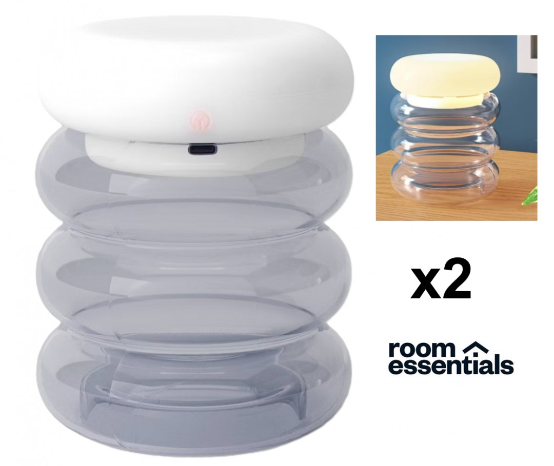 2 room essentials Portable Cordless Storage Novelty Table Lamp with Rechargeable Battery - clear