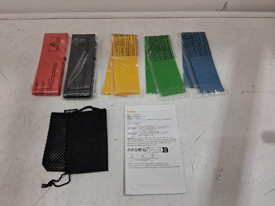 5PK GRITIN SKIN-FRIENDLY RESISTANCE FITNESS EXERCISE LOOP BANDS WITH 5 DIFFERENT RESISTANCE LEVELS - FREE CARRYING CASE INCLUDED - MULTICOLOUR