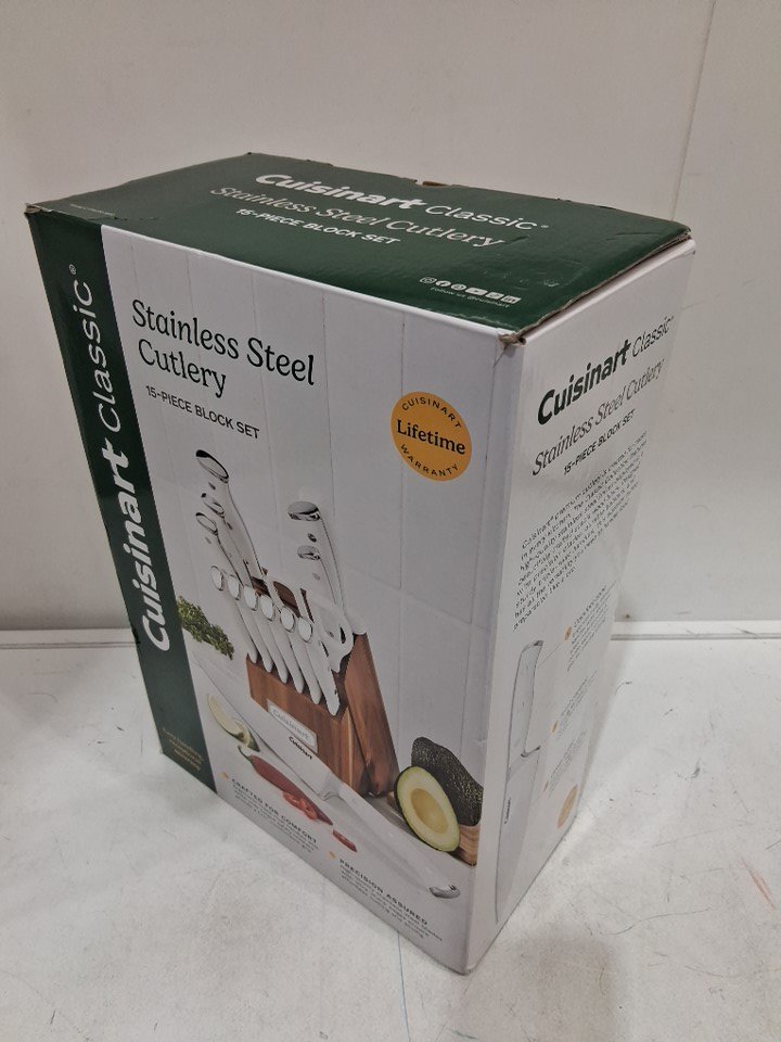 15PC Cuisinart High Carbon Stainless Steel Forged Triple Rivet Knife Set with Block - WHITE / WOOD (MODEL: C77WTR-15P2)