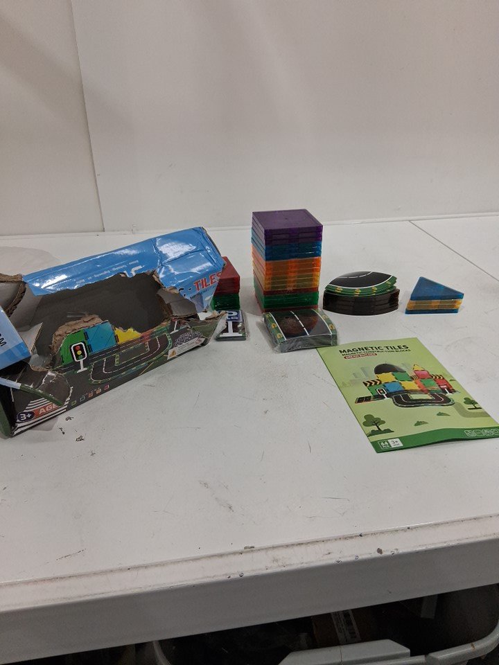 64PC Feoxialy Magnetic Tiles with Road Toppers Set - Multicolor