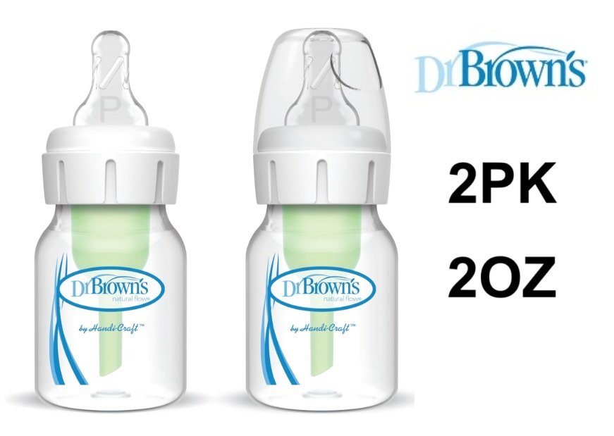 2PK Dr. Brown’s Natural Flow Anti-Colic Narrow Baby Bottle with Preemie Flow nipple - 2oz - clear (model: SB2200-P3)