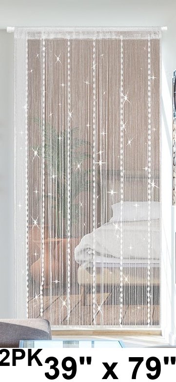 2PK hysenm Door string curtains with flitter fringe - 39 x 79 - gold / white
