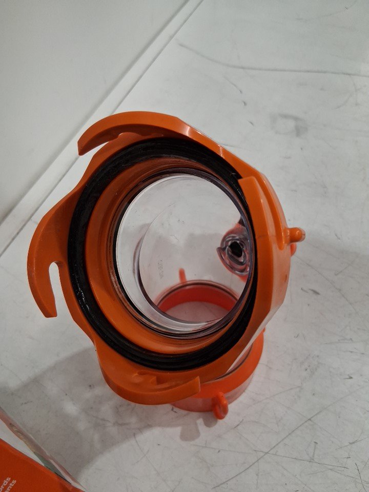 please note item is missing additional black piece. the item has residue from previous use. see photos.