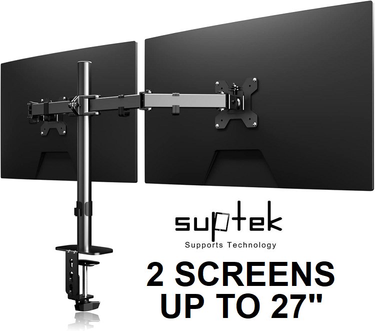 Suptek Heavy Duty Dual Monitor Desk stand MouNT - for 2 screens up to 27" - black (model: MD9442)