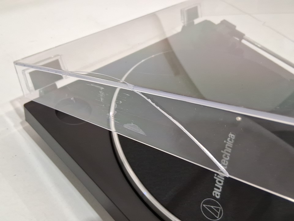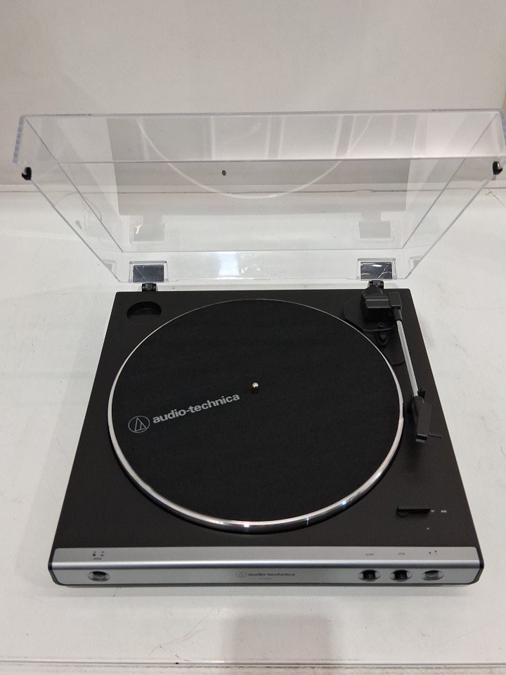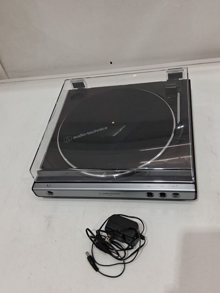 **Tested for power and mechanical functions.** Item does not include a cartridge or a 45rpm adapter; there is a crack in the plastic cover likely due to shipping, see photos.
